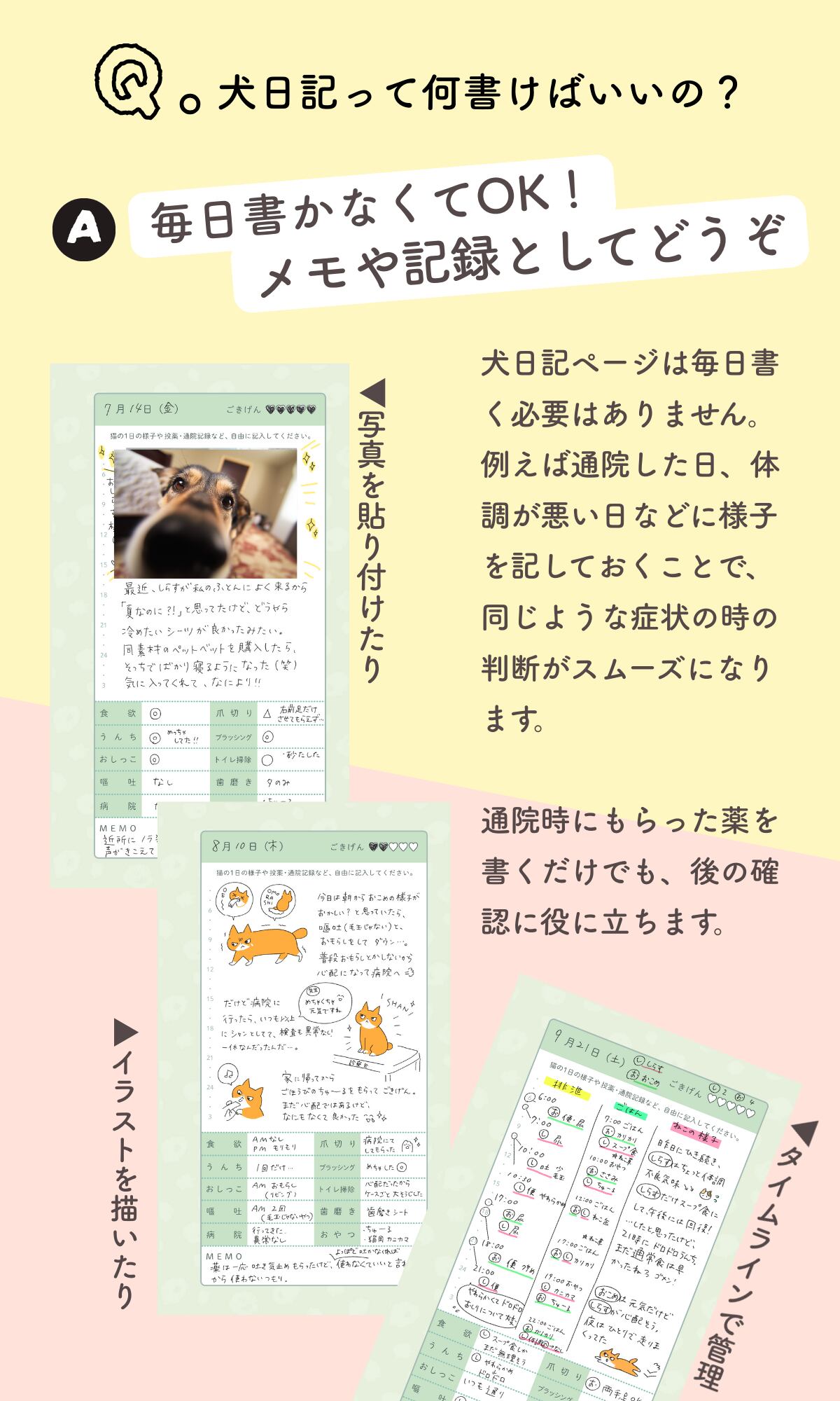 日記・検査記録など、追加したいページがある場合は別売りのパックで自由にカスタマイズできます