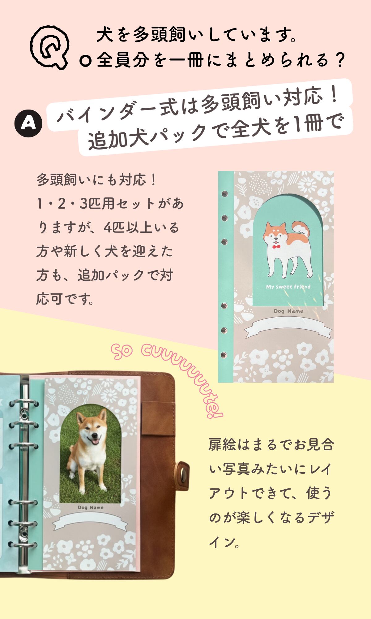 「バインダー式いぬヘルプ手帳」は、もしもの時に大切な愛犬を守るために作られた“犬専用の母子手帳”です。